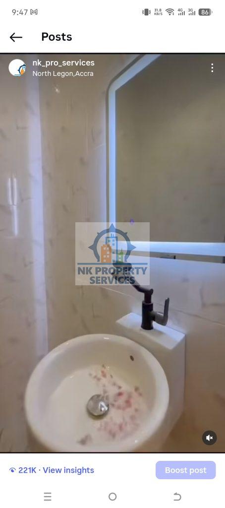 Rush Now! Rush Now!! Rush Now!!! Modern contemporary three bedroom house for sale at North Legon, Agbogba. Located in a serene environment. It comes 3 bedroom en suite Guest toilet. Fully fitted kitchen. Fitted AC units. Electric fence. Installed CCTV Wardrobes Spacious hall with a compound view. Mechanized borehole with pump Ample parking space. Asking price: $155,000 Call now on +233544106578