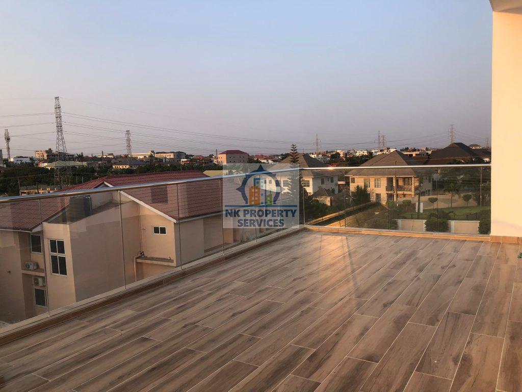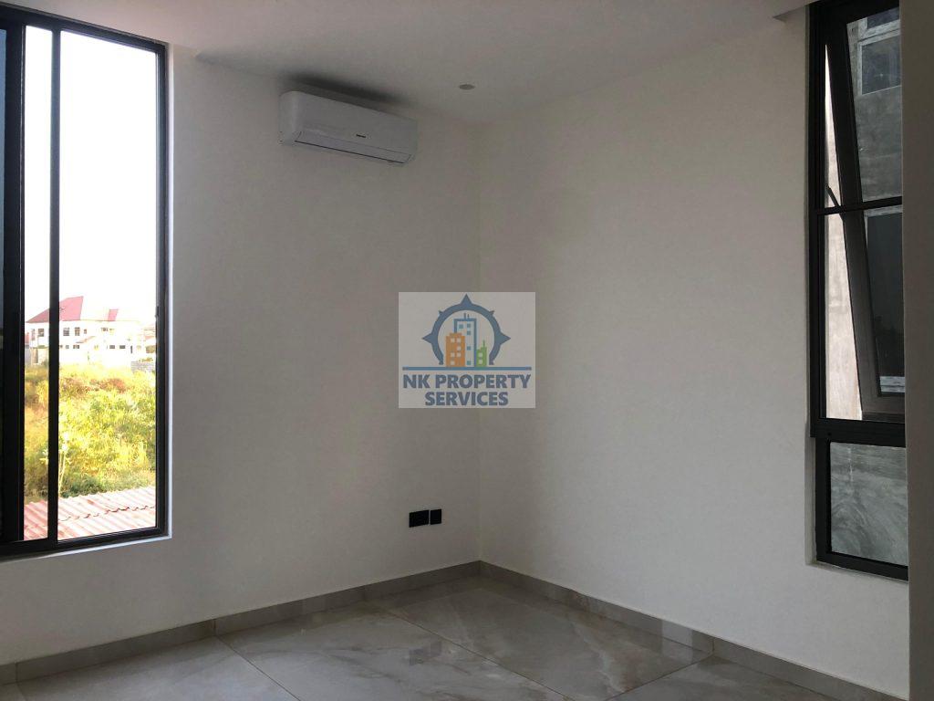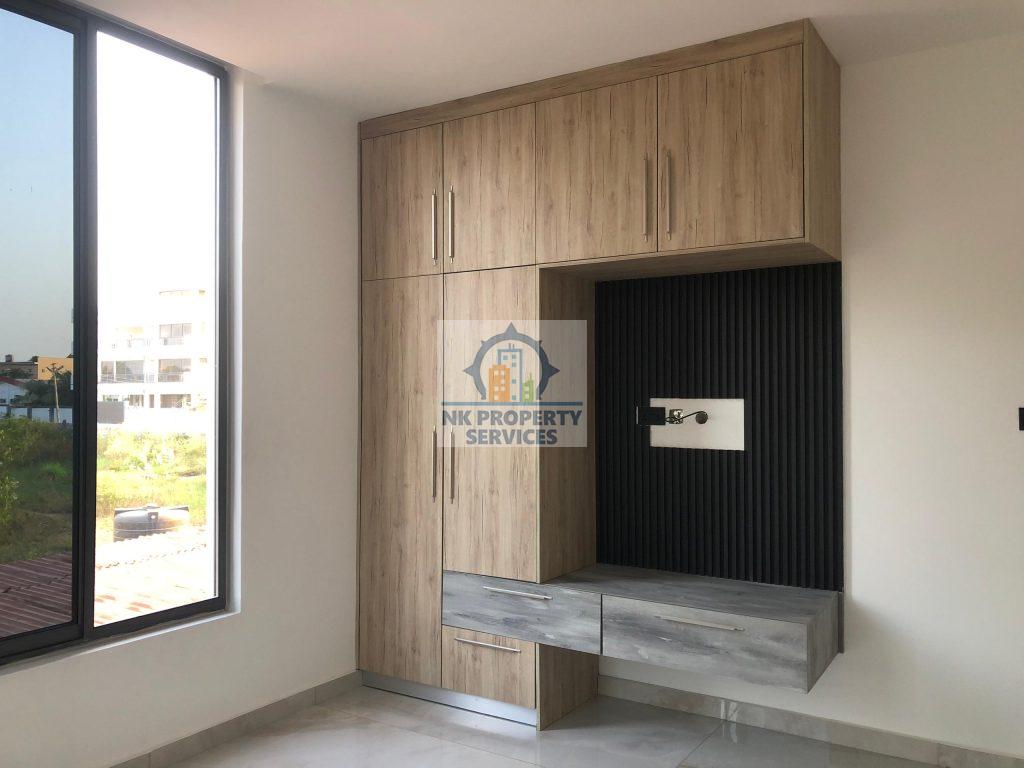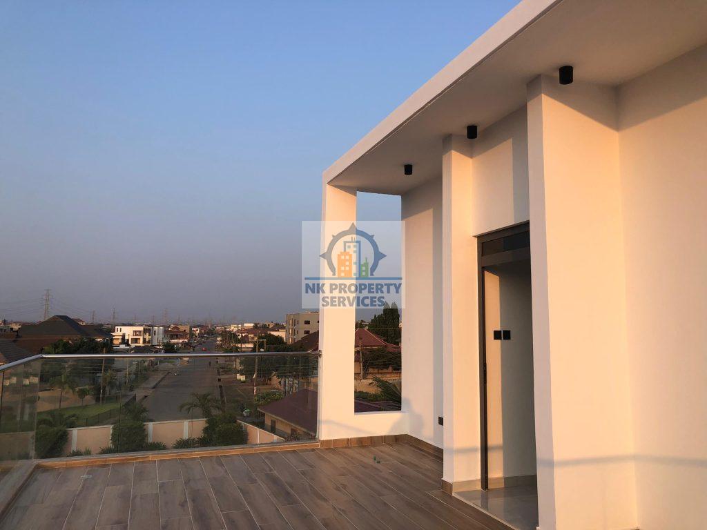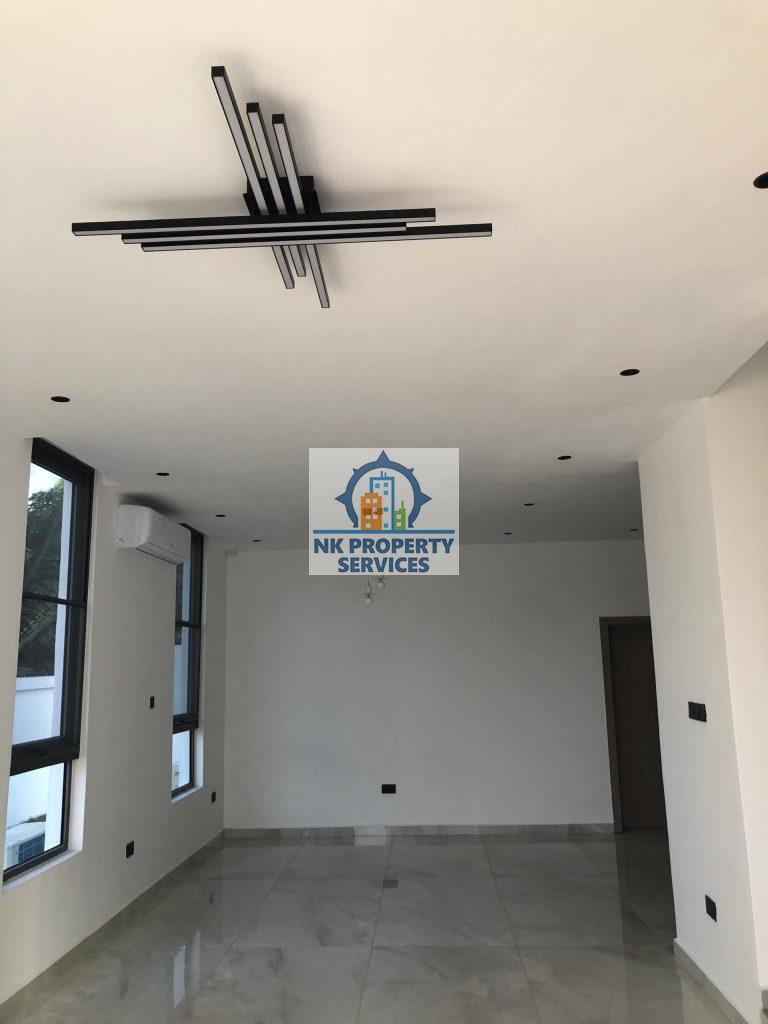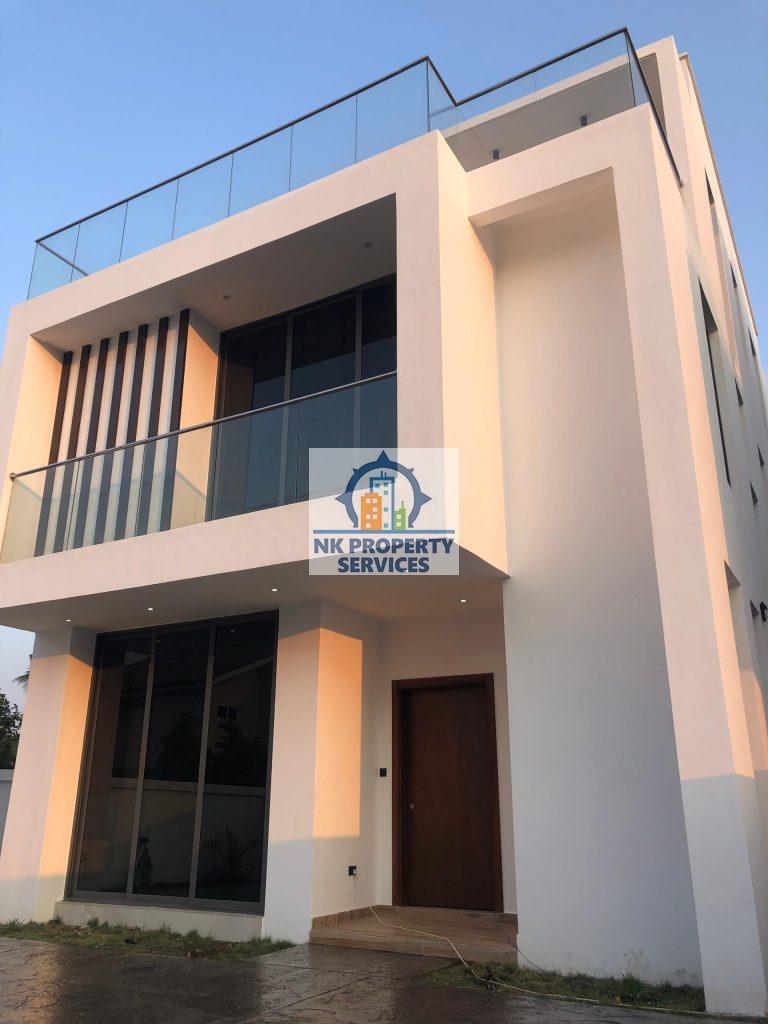 Executive four bedroom house for sale at East Legon, Adringanor. A well crafted gated estate that comes with; 1. Panelled / Flush doors 2. Recessed ceiling lighting 3. Fitted Wardrobes 4. Air conditioning units 5. TV & Internet Connectivity 6. Fully Fitted Kitchens with Appliances; Refrigerator, Hob & Extractor, Oven, Microwave, Washing Machine. 7. Bathrooms with Porcelain Tiles. 8. Tempered Glass Balustrades 9. Water Heating Systems Exterior 1. Gated Development 2. 24-hour Security 3. Rooftop Area 4. Backup Water & Power Supply 5. Electric Security Fencing 6. Property 7. Car Parking 8. Fire Escape Staircase 9. Fire Protection and Safety System Call NK Property Services for more details and inspection. Agent terms of service apply